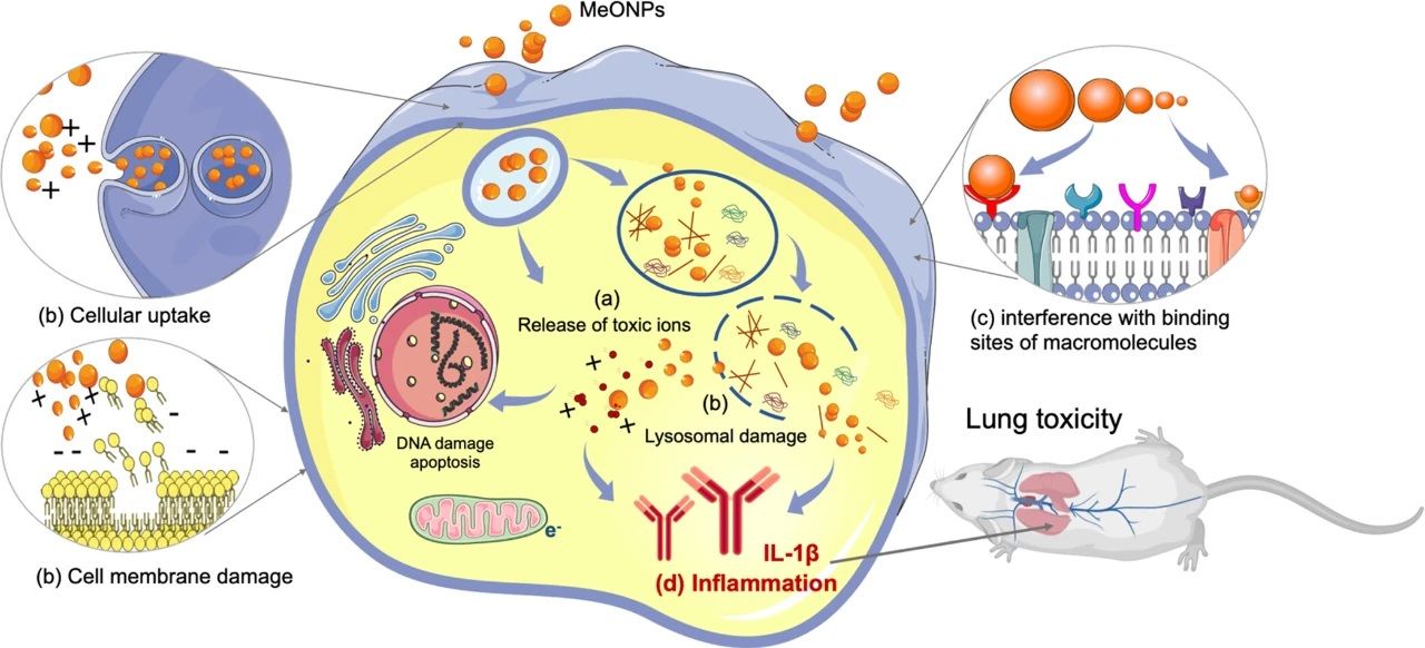 图7 金属氧化物纳米颗粒(MeONPs)诱导的肺毒性示意图。Environmental Significance