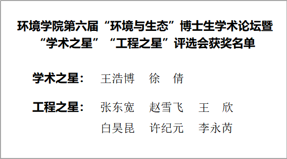 评审结束后的颁奖仪式由学院党委副书记兼副院长窦智主持,万年红、崔焱等专家分别进行了精彩点评。专家们对参赛选手的创新成果给予了高度评价,称赞他们在学术研究和工程实践中展现出的创新思维与专业能力。同时,鼓励同学们要心怀远大梦想,在更广阔的平台上充分施展才华,不断追求卓越。随着评选结果的揭晓,太阳成tyc7111cc第六届“环境与生态”博士生论坛暨“学术之星”“工程之星”评选会圆满落幕。