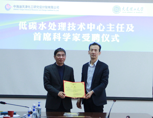 会议进行石化工业水处理国家工程实验室-低碳水处理技术中心授牌仪式,韩勇强董事长为全燮教授颁发低碳水处理技术中心主任及首席科学家聘任证书。
