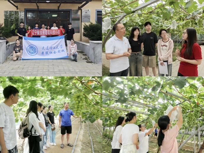 营口鲅鱼圈区土壤盐碱化问题突出,制约农业发展。实践团抵达鲅鱼圈葡萄科技小院,与沈阳农业大学驻点研究人员深入交流。团队重点考察了“妮娜皇后”等葡萄品种在盐碱环境下的绿色种植实践。科技小院通过精准枝叶修剪、科学施肥、温湿度调控等绿色管理技术,有效提升了果实着色与品质。成员们结合环境专业背景,就盐碱地土壤改良、病虫害绿色防控等关键技术问题与专家展开研讨,并亲自体验葡萄套袋栽培技术。通过田间实践,成员们不仅深化了对绿色农业的认识,更体会到农耕不易,增强了运用专业知识服务乡村的责任感。