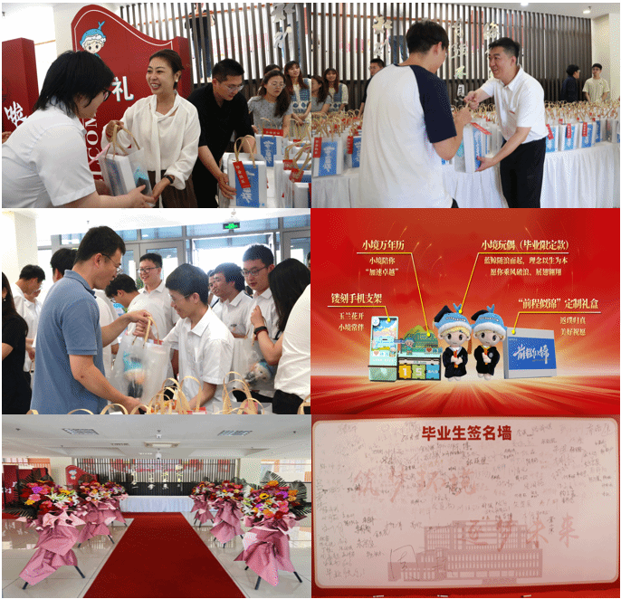 冷餐会第三篇章“向未来·不说再见,奔赴山海”上,一段惊喜视频、一份毕业生专属定制礼物,引发在场师生热烈反响,学院领导老师为毕业生同学发放礼品、细心叮嘱,希望他们将这份母校的祝福和教导走上新的人生旅程。签名墙上的一个个毕业生名字,将永远印刻在每位老师的心间。